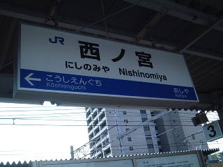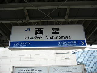 | 「西ノ宮」駅時代の駅舎と駅名標識。駅名の違い以外は今と変わらない。西ノ宮、三ノ宮、森ノ宮のように間に「ノ」を入れるのが国鉄→JRのお約束だったが、今回は西宮市の要望を聞いた結果での改名で、稀なケースである。(取材日 平成16年2月7日) | |||||||||